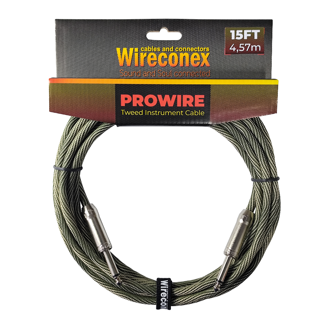 Cabo Tweed para Instrumentos P10 x P10 - Dourado e Verde Tamanhos disponíveis: • 10 FT: 3,05 m • 15 FT: 4,57 m • 20 FT: 6,10 m