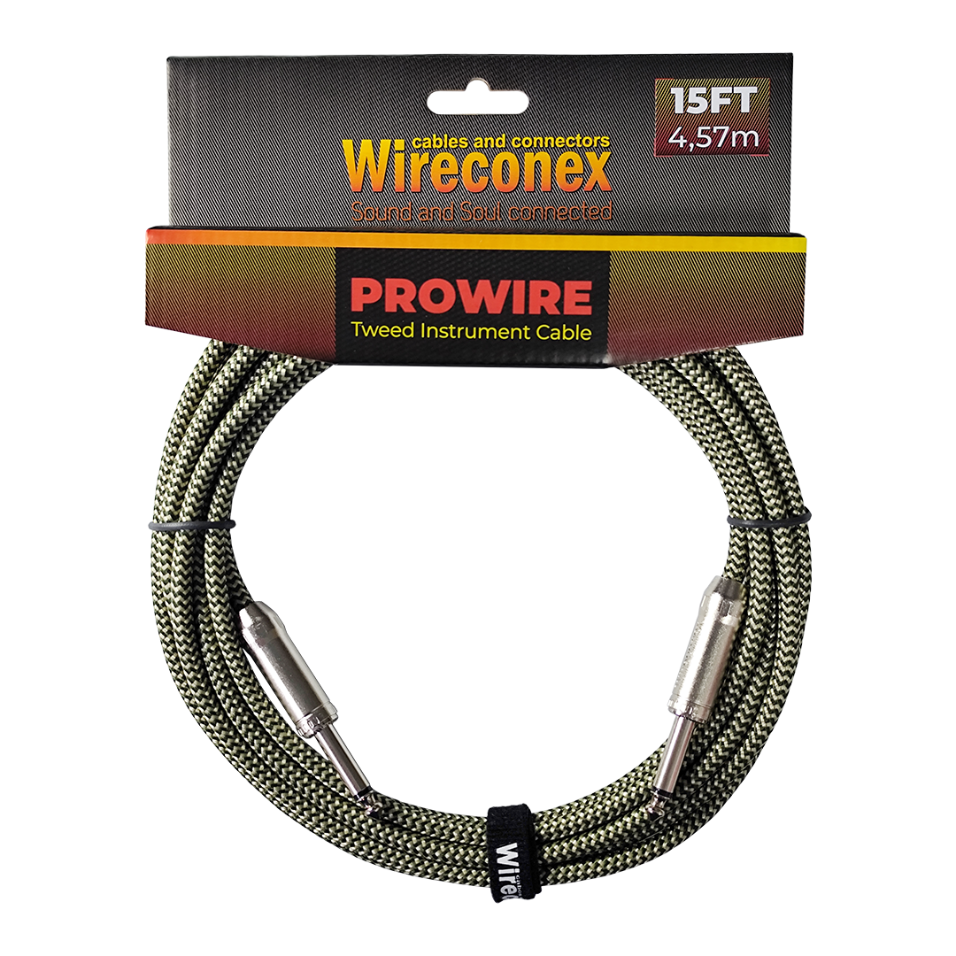 Cabo Tweed para Instrumentos P10 x P10 - Dourado e Verde Tamanhos disponíveis: • 10 FT: 3,05 m • 15 FT: 4,57 m • 20 FT: 6,10 m